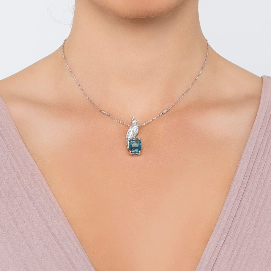 Your Crested Love Bird Pendant Necklace in polished sterling silver is a graceful tribute to love, freedom, and understated beauty. Handcrafted in 925 sterling silver, this refined piece features a delicate crested bird perched atop a rich, rectangular-cut lab-created London blue topaz—a stone known for its calming, soulful colour.