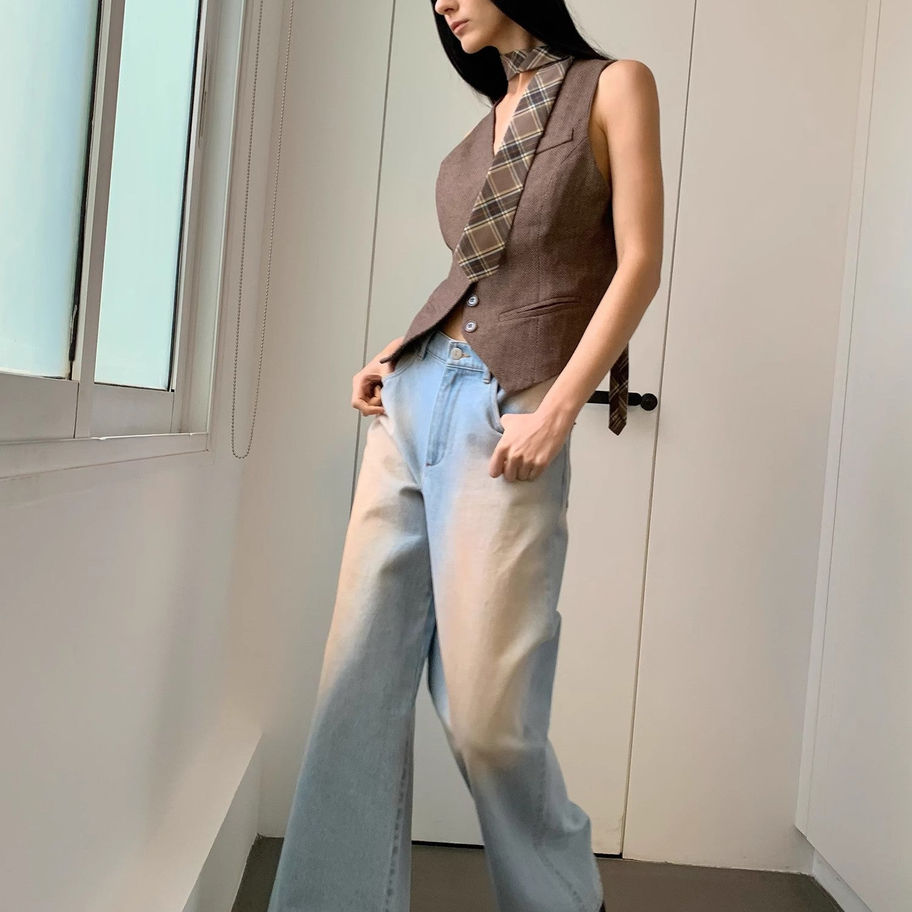 Give cool denim single product a feminine and soft style, exquisite layering, extending the beauty of flowing colors, hiding the elegant and casual gentleness in it. Loose wide leg flared design, infinitely extending the leg line to create a golden ratio, hiding flesh and showing thinness, interpreting effortless fashion.